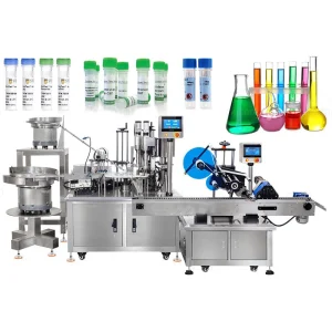 آلة تعبئة وتغطية السوائل الصغيرة ذات الدقة العالية لأنابيب الاختبار الدوائية الدوارة