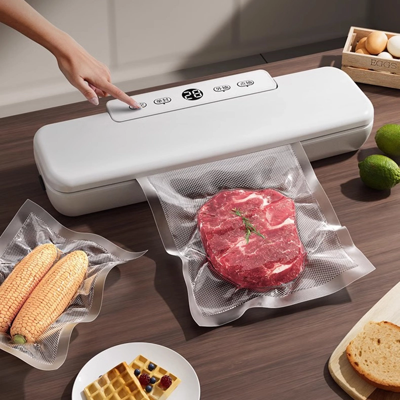 آلة تفريغ الهواء أوتوماتيكية بالكامل لتغليف الأطعمة وآلة ختم أكياس البلاستيك الخاصة بالحفظ بالتفريغ، آلة منزلية صغيرة