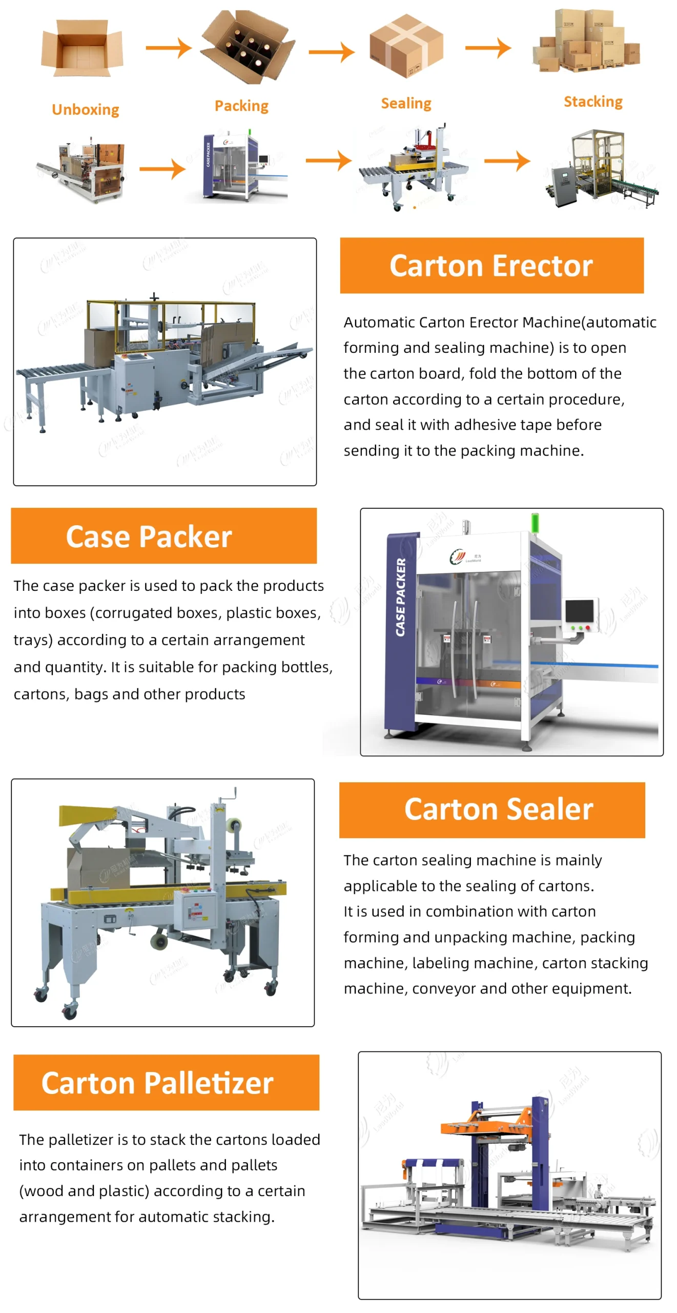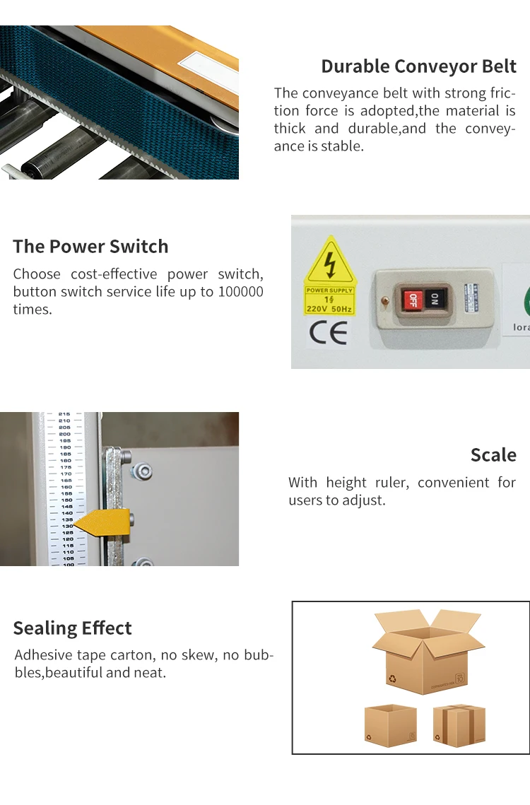 يمكن لآلة الطي والختم الأوتوماتيكية طي الغطاء العلوي تلقائيًا ولصق الشريط تلقائيًا في الأعلى والأسفل دون تشغيل يدوي؛ يتم غلق الكرتون بشريط فوري، ويكون تأثير الختم سلسًا وجميلًا، ويكون الختم ثابتًا. يمكن تشغيلها بواسطة آلة واحدة أو مزودة بخط تعبئة آلي. تستخدم على نطاق واسع في صناعات الأغذية والأدوية والمشروبات والتبغ والمواد الكيميائية اليومية والسيارات والكابلات والإلكترونيات وغيرها.