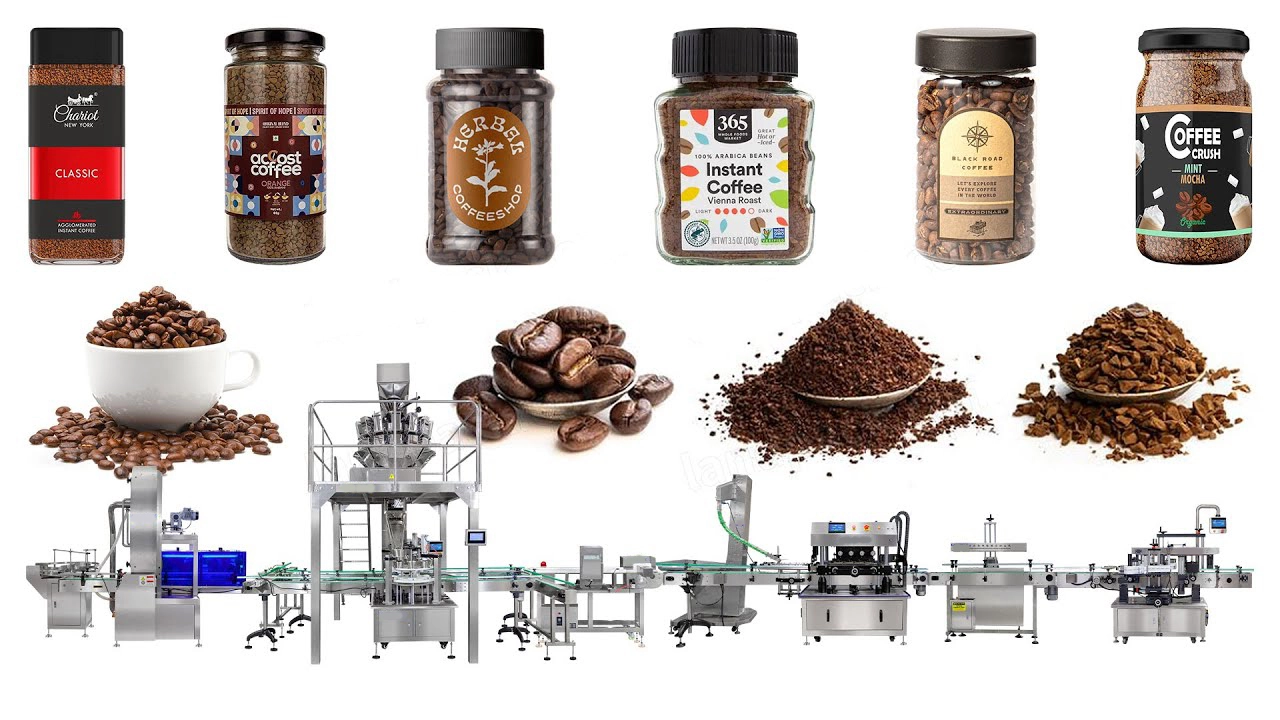 آلة تعبئة وتغليف وتسمية زجاجات حبيبات حبوب القهوة الأوتوماتيكية المربعة المستديرة