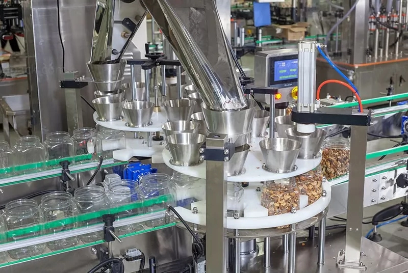 مناسب لتعبئة الزجاجات تلقائيًا لمختلف المنتجات الحبيبية، مثل المكسرات وحبوب البن والفول السوداني والحلوى والبذور ورقائق البطاطس والفشار واللوز والفواكه المجففة وسلطة الخضار والأطعمة المجمدة والهلام والبسكويت والشوكولاتة والبندق والذرة وطعام الحيوانات الأليفة، إلخ.