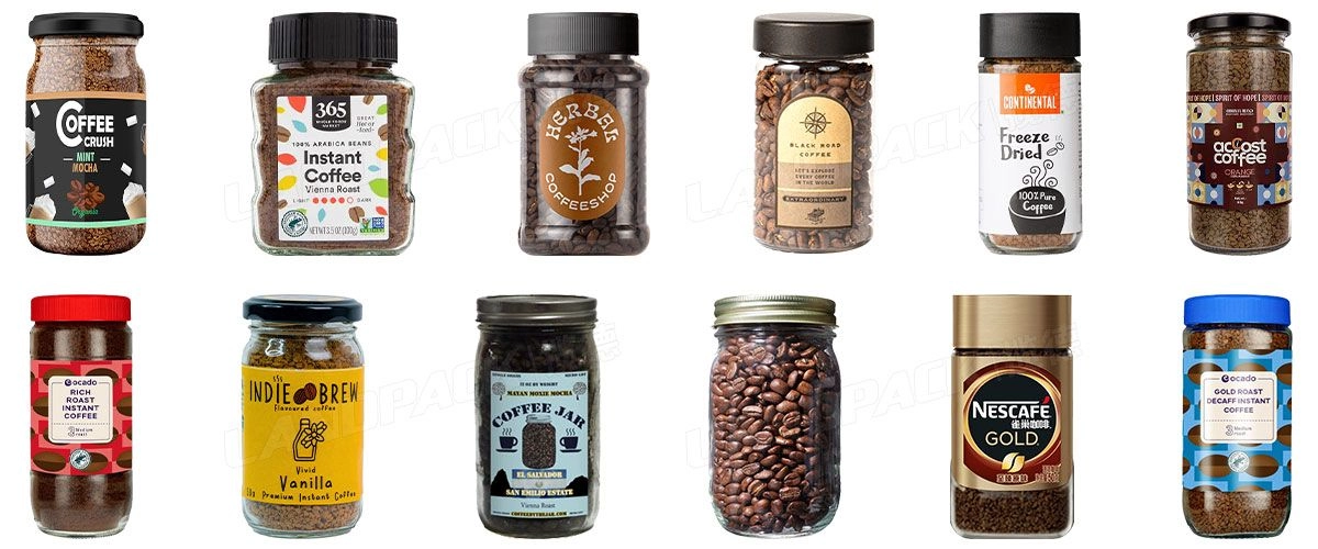 خط تعبئة ووزن زجاجات حبوب القهوة الحبيبية الأوتوماتيكية مع التعقيم بالأشعة فوق البنفسجية