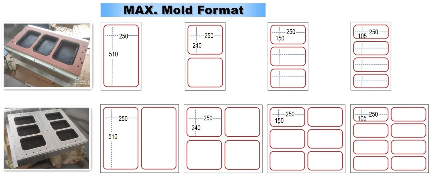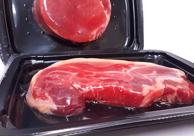 يحتاج المستخدم فقط إلى وضع الصينية على الآلة، وستقوم الآلة تلقائيًا بتغذية الصواني في غرفة مغلقة لتعبئة الجلد المفرغ ثم إخراج الصواني بسرعة عالية. بهذه الطريقة توفر العمالة البشرية، وتتجنب المزيد من التلامس بين العامل والطعام.