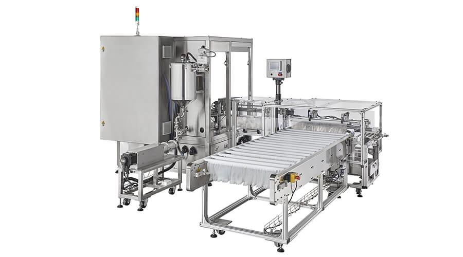 املأ الكيس بالسائل من خلال فوهة الشفط، ويسقط أنبوب التعبئة في الفوهة لمنع السائل من التناثر. تستخدم أسطوانة كمية للتعبئة ويتم التحكم فيها بواسطة محرك سيرفو. وهي مناسبة للسوائل ذات اللزوجة العالية والمنخفضة والتعبئة الدقيقة للجرعات.