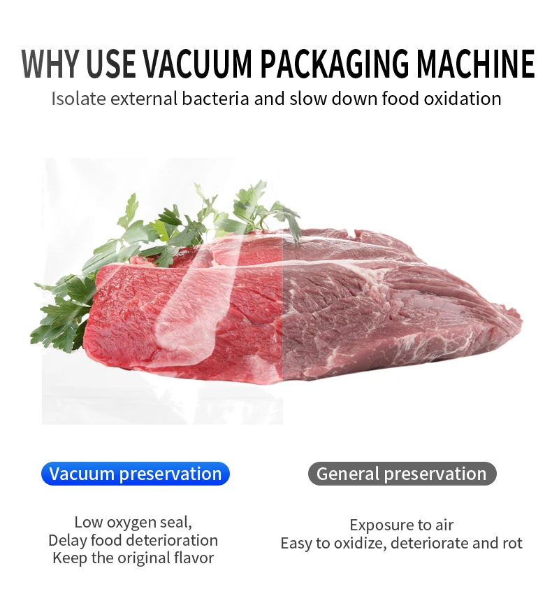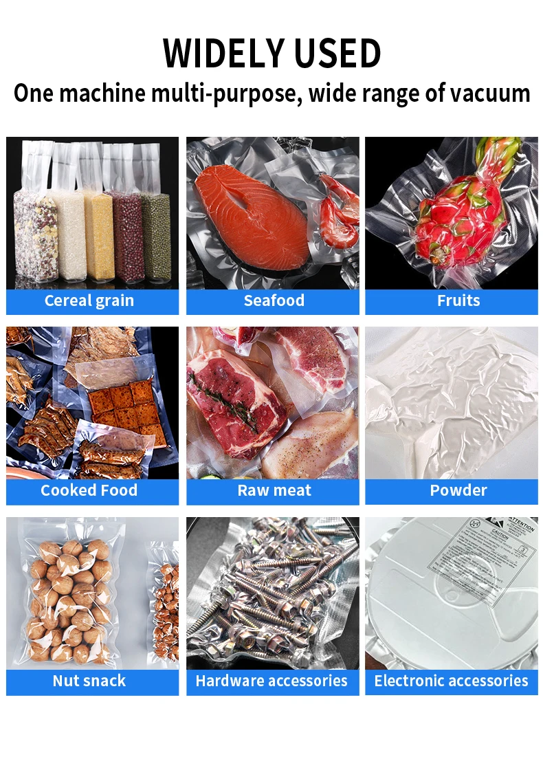 تتميز آلات التعبئة المفرغة من الهواء هذه بالمعالجة التلقائية للتفريغ والختم والتبريد، والتي تستخدم في التعبئة المفرغة من الهواء للصناعات الغذائية والصيدلانية والمائية والكيميائية والإلكترونية. يمكنها منع المنتجات من الأكسدة والعفن، وكذلك التآكل والرطوبة، والحفاظ على الجودة والنضارة وإطالة وقت التخزين.