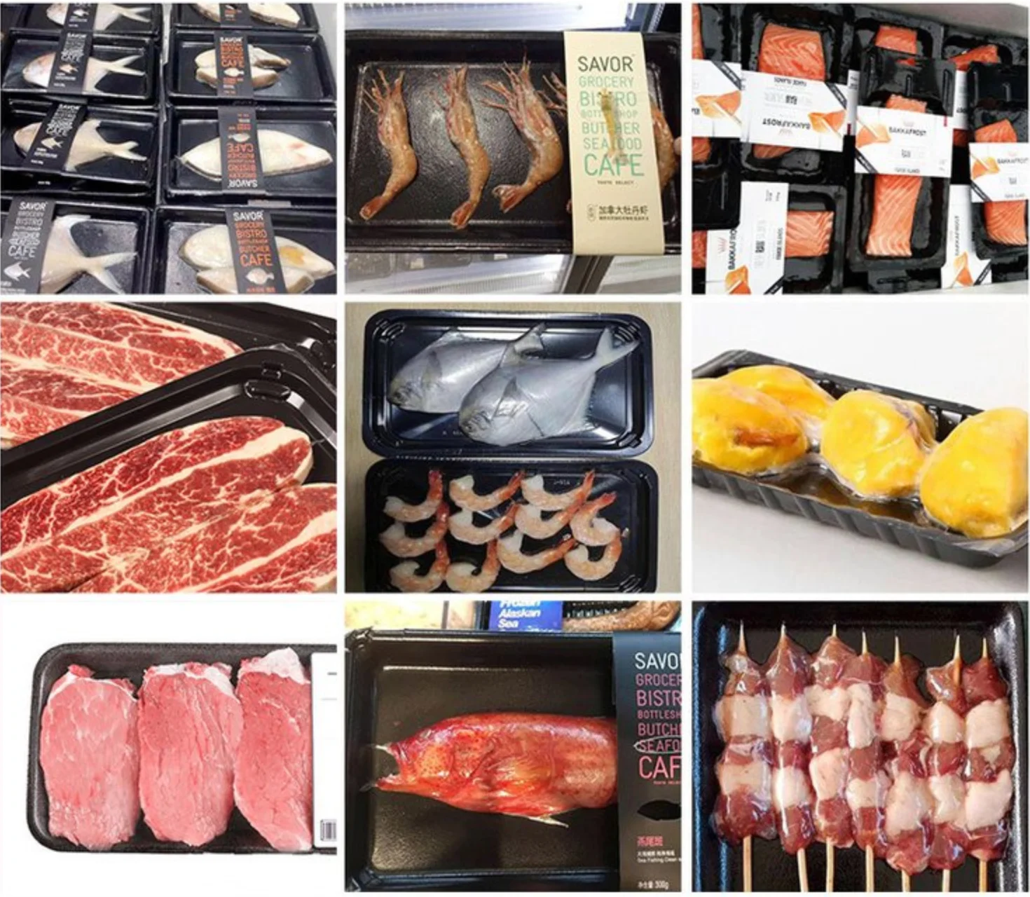 بالنسبة للمنتجات المعبأة بالجلد، يتم ربط الفيلم تمامًا باللحوم لتشكيل بيئة تشبه الفراغ، وتأثيره في عزل الهواء والبكتيريا أفضل من التغليف المفرغ من الهواء. يمكن للتغليف بالجلد ضمان الحفاظ على اللحوم طازجة لمدة 21 يومًا عند 0-4 درجات مئوية.