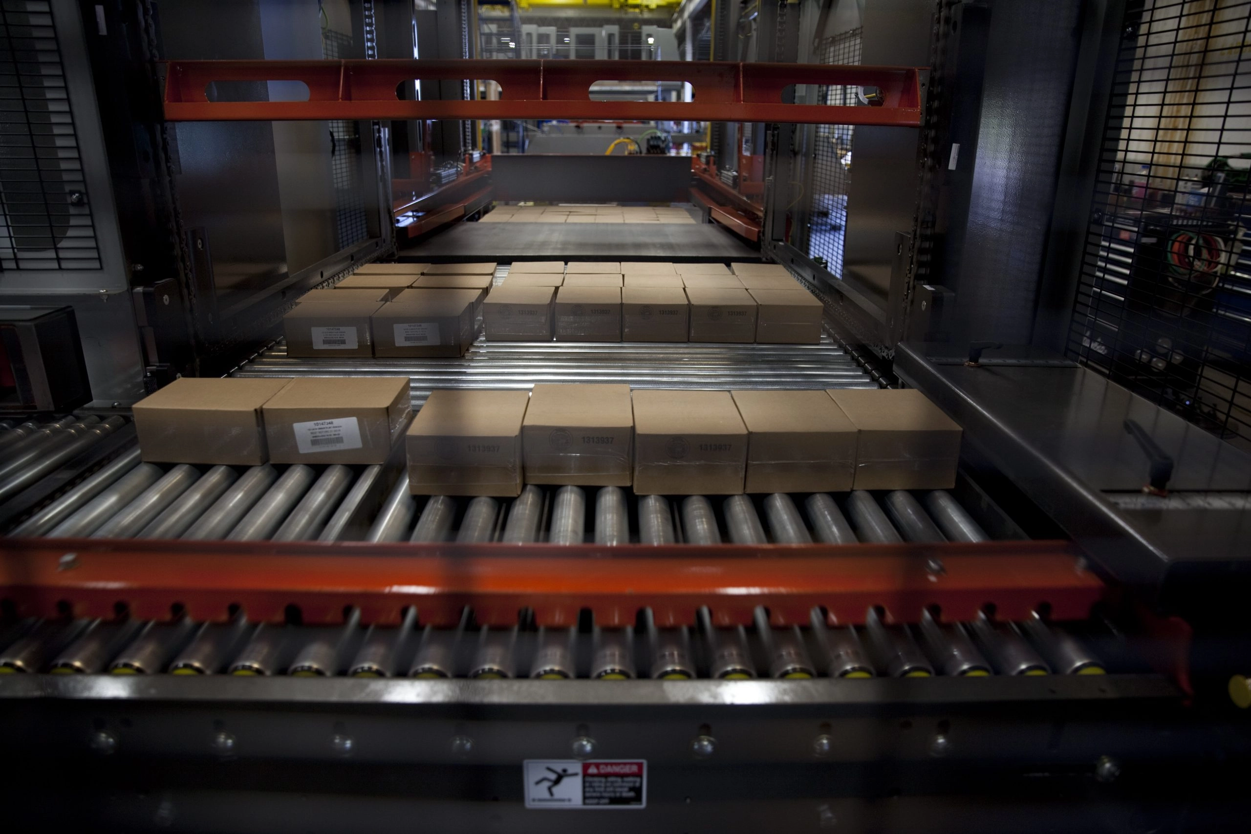 شاهد آلة FL3000 وهي تكدس حزم الطلاء في نمط متشابك.