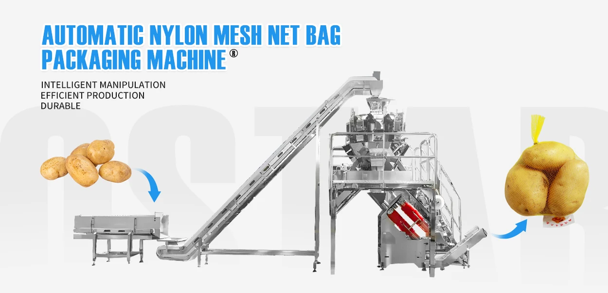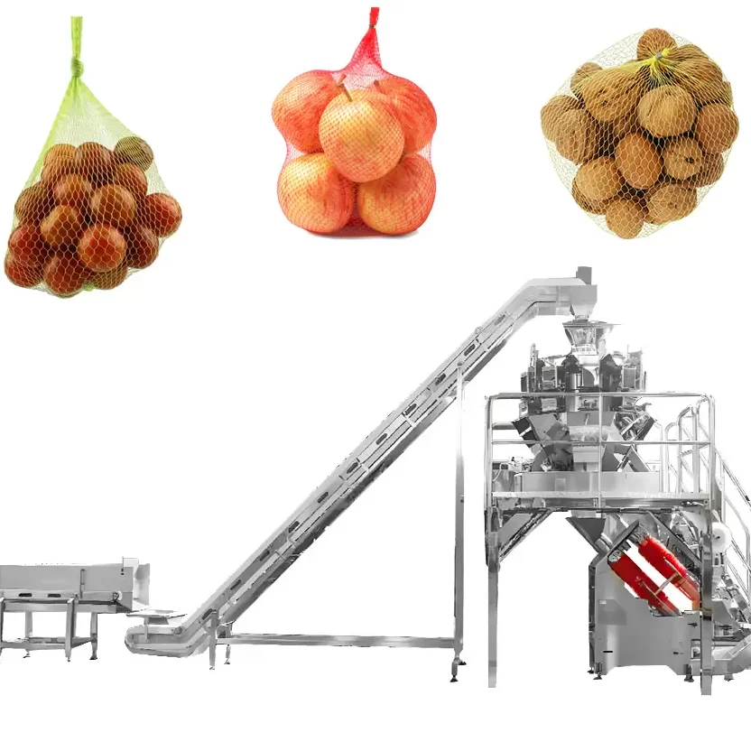 آلة تعبئة أكياس شبكية أوتوماتيكية بالكامل متعددة الوظائف للتفاح والبطاطس والجزر والبصل