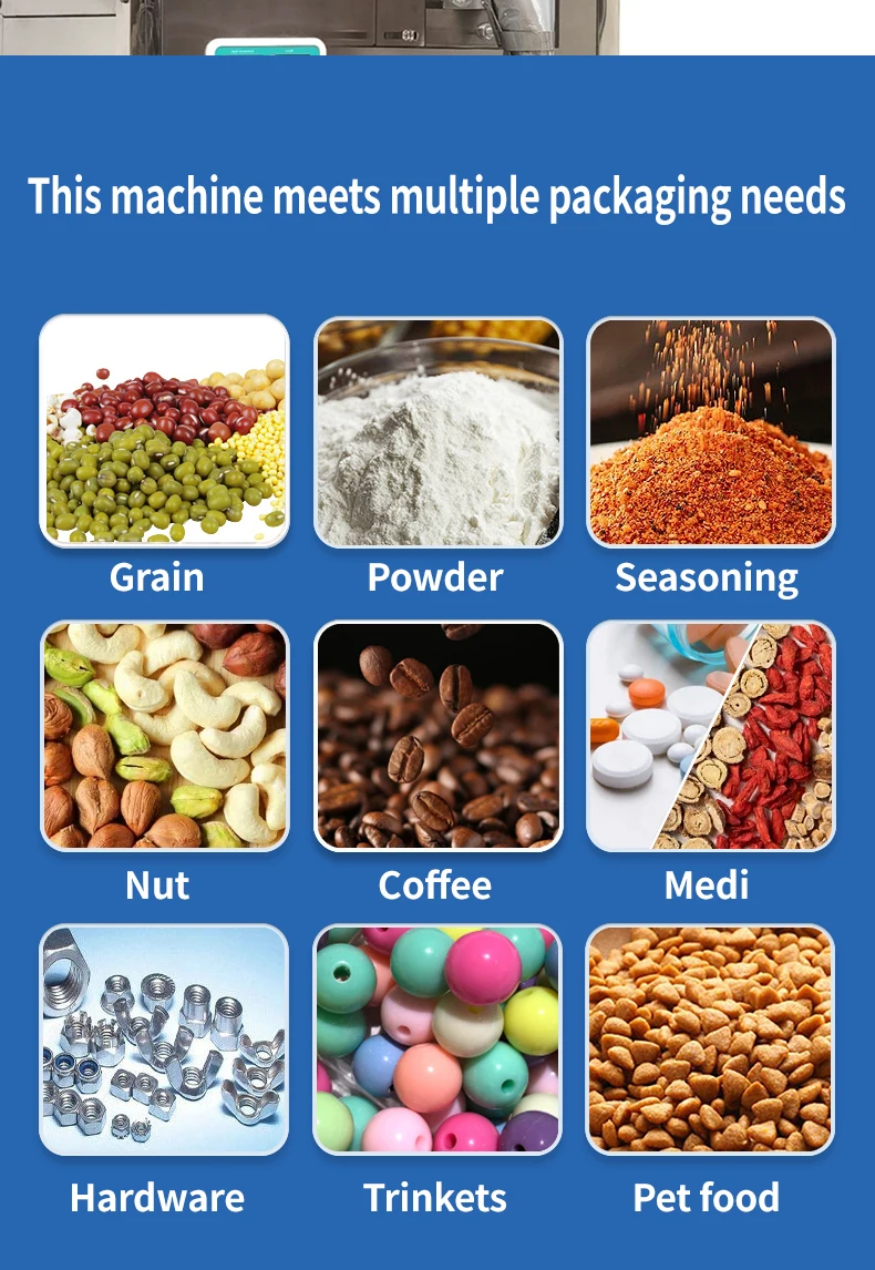 إن آلة تعبئة الحبيبات الأوتوماتيكية هذه مصنوعة من الفولاذ المقاوم للصدأ مع أداء مستقر واستهلاك أقل وكفاءة عالية وأمان ونظافة، وهي عبارة عن جهاز مثالي يمكن استخدامه لتعبئة الطعام والشاي والأعشاب والمسحوق الجاف والحبيبات والبذور والحبوب والقمح والفاصوليا والأجهزة الصغيرة والمكونات وما إلى ذلك.
