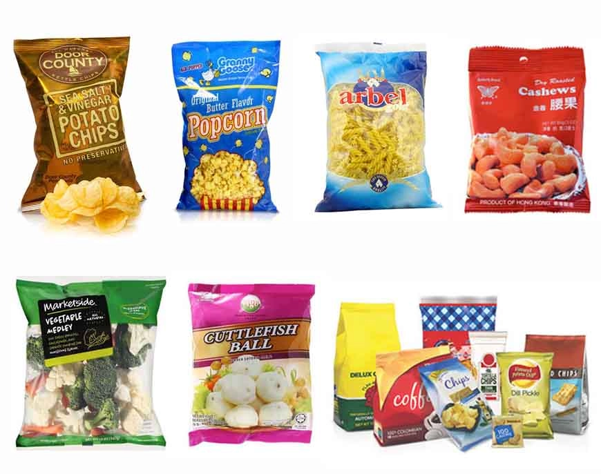 آلة التغليف الأوتوماتيكية العمودية مناسبة لتعبئة المواد الهشة عالية الدقة والسهلة مثل: الأطعمة المنتفخة، والأرز المقرمش، والهلام، والحلوى، والفستق، وشرائح التفاح، والزلابية، والشوكولاتة، وأطعمة الحيوانات الأليفة، والأجهزة الصغيرة، والأدوية، وما إلى ذلك.
