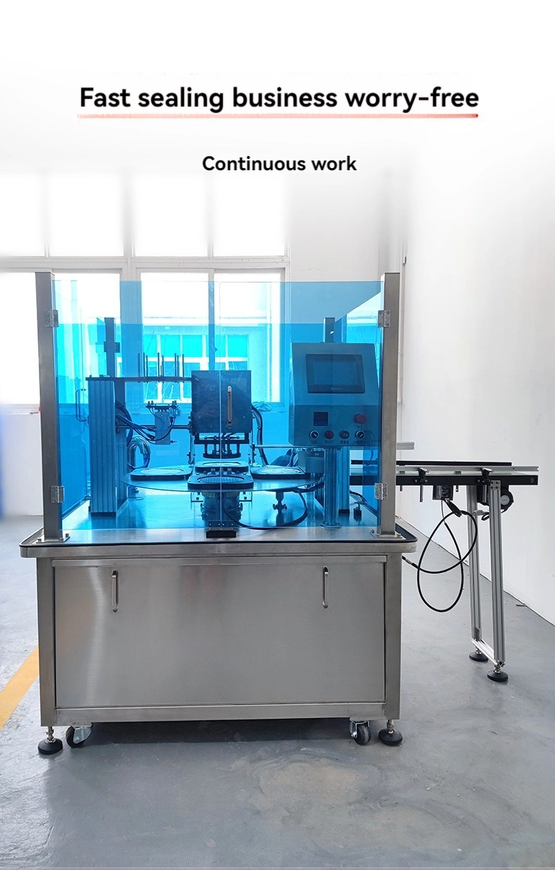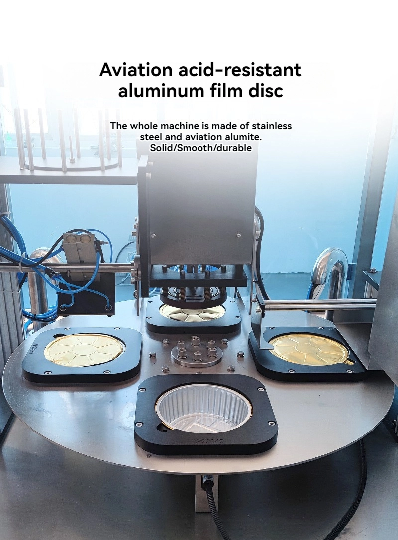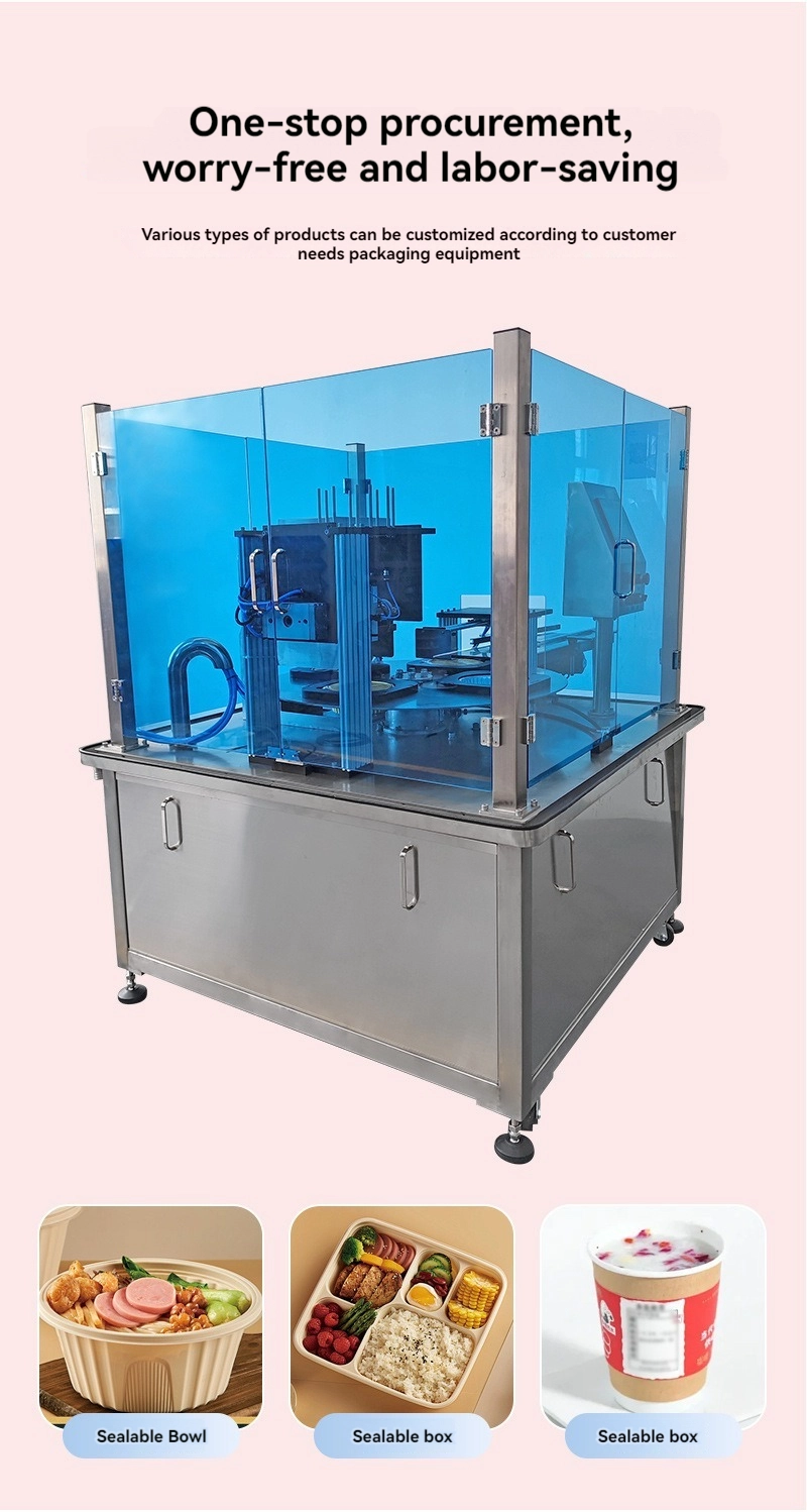 آلة الختم الأوتوماتيكية الدوارة، آلة تعبئة خط التجميع القابلة للتخصيص، آلات تعبئة وتغليف علب الغداء البلاستيكية المصنوعة من رقائق الألومنيوم