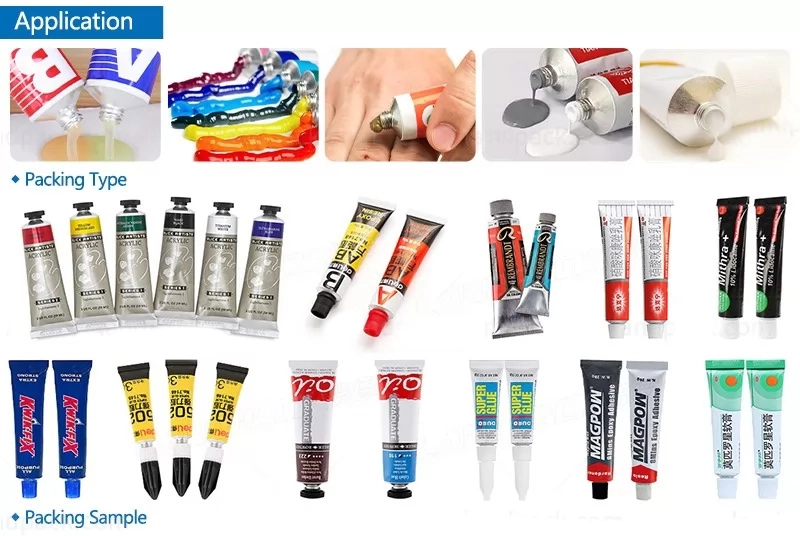 يمكن استخدام آلة تعبئة الأنابيب المصنوعة من الألومنيوم هذه على نطاق واسع في صناعات الأغذية ومستحضرات التجميل والأدوية والمواد الكيميائية، ويمكن استخدامها لإنتاج المعجون والمواد اللاصقة وغراء AB وغراء الإيبوكسي وكريمات البشرة وصبغات الشعر وملمع الأحذية ومعجون الأسنان والسيليكون المرن، إلخ.